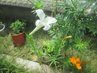 きれいな鉄砲ユリとニラの花が咲いています🌼