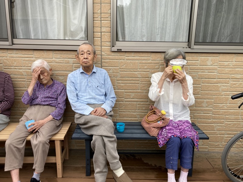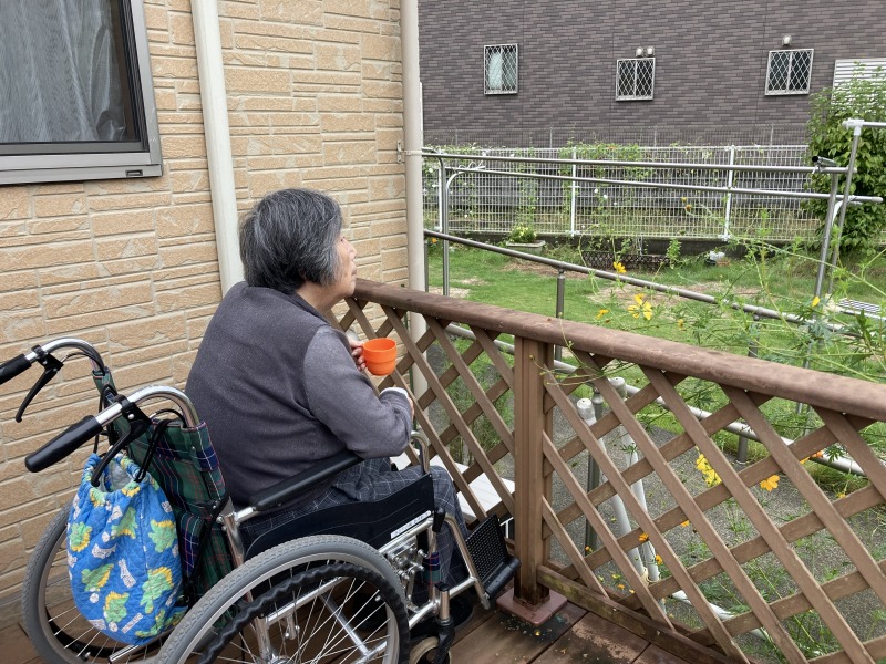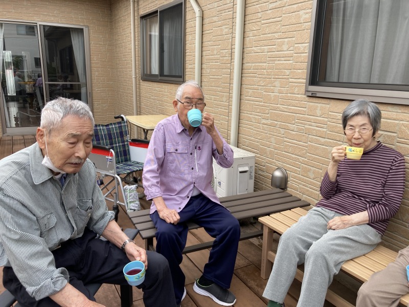 今日は涼しかったので外気浴時、ウッドデッキで一休みしました。