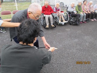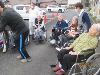 初めて参加するスタッフと一緒に利用者様と外へと出ました。