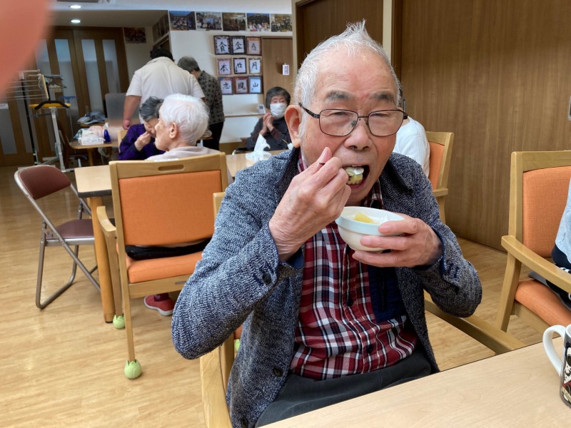 Fさんに皮をむいて切っていただいたリンゴを電子レンジにかけて柔らかくしました。