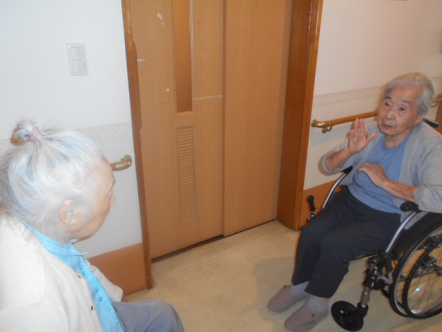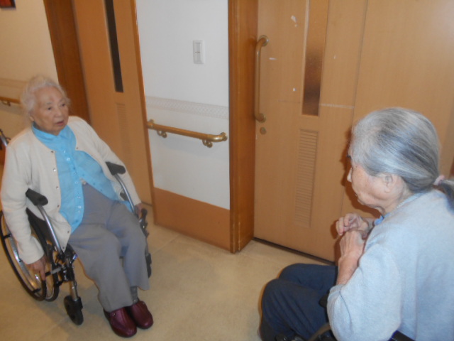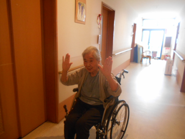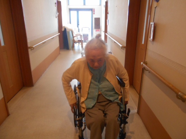 一生懸命に廊下を車椅子で自走していますと