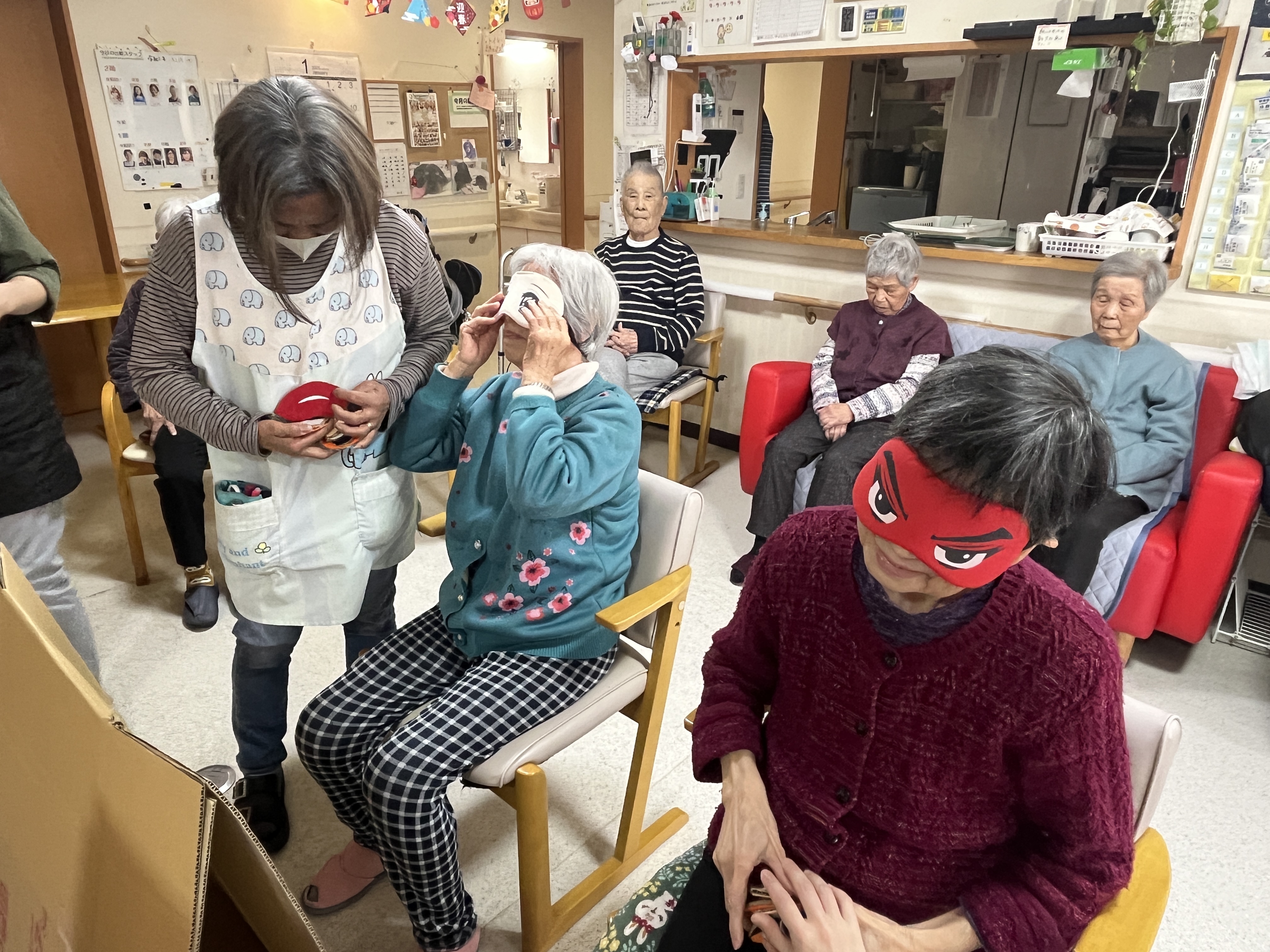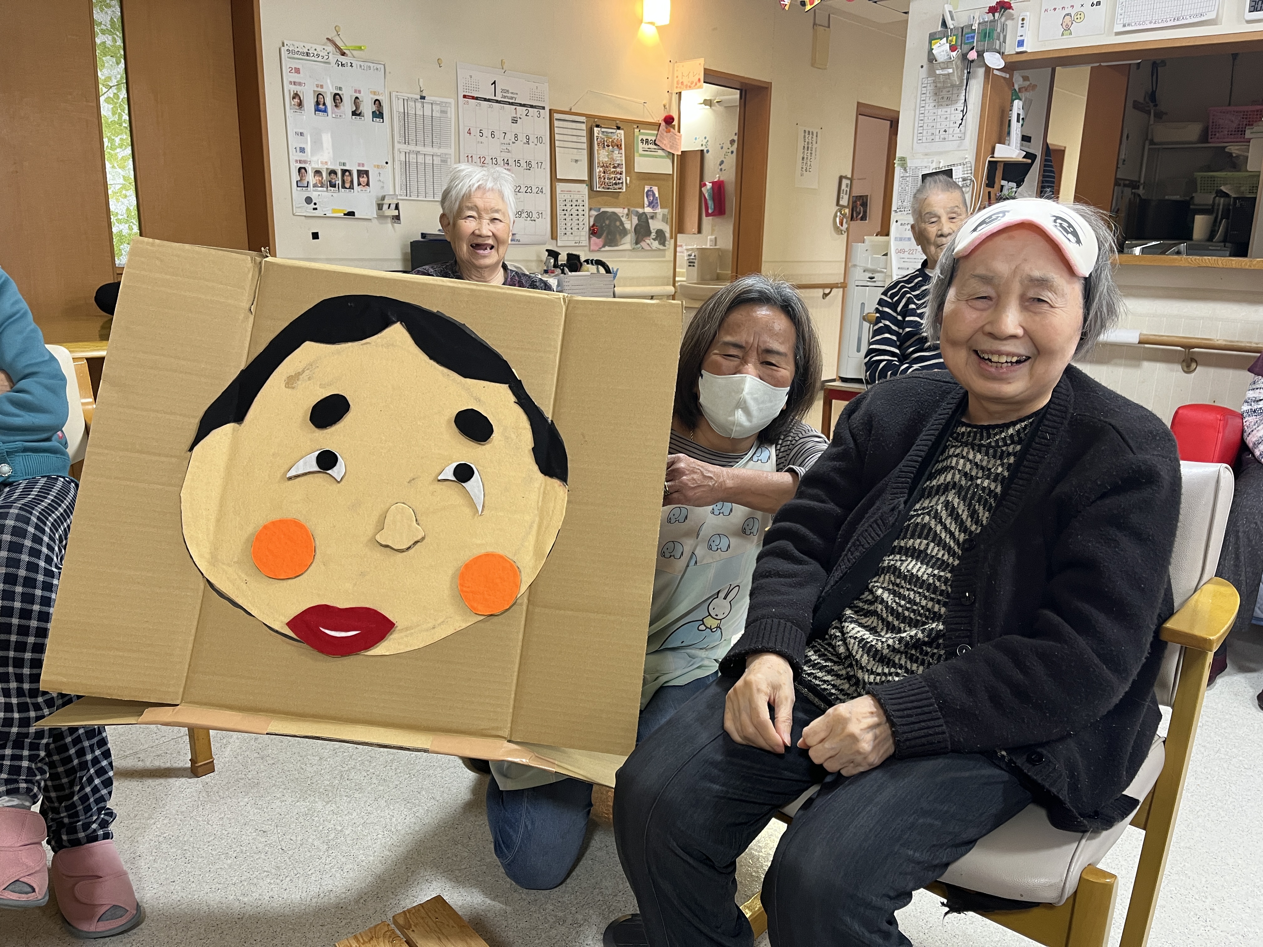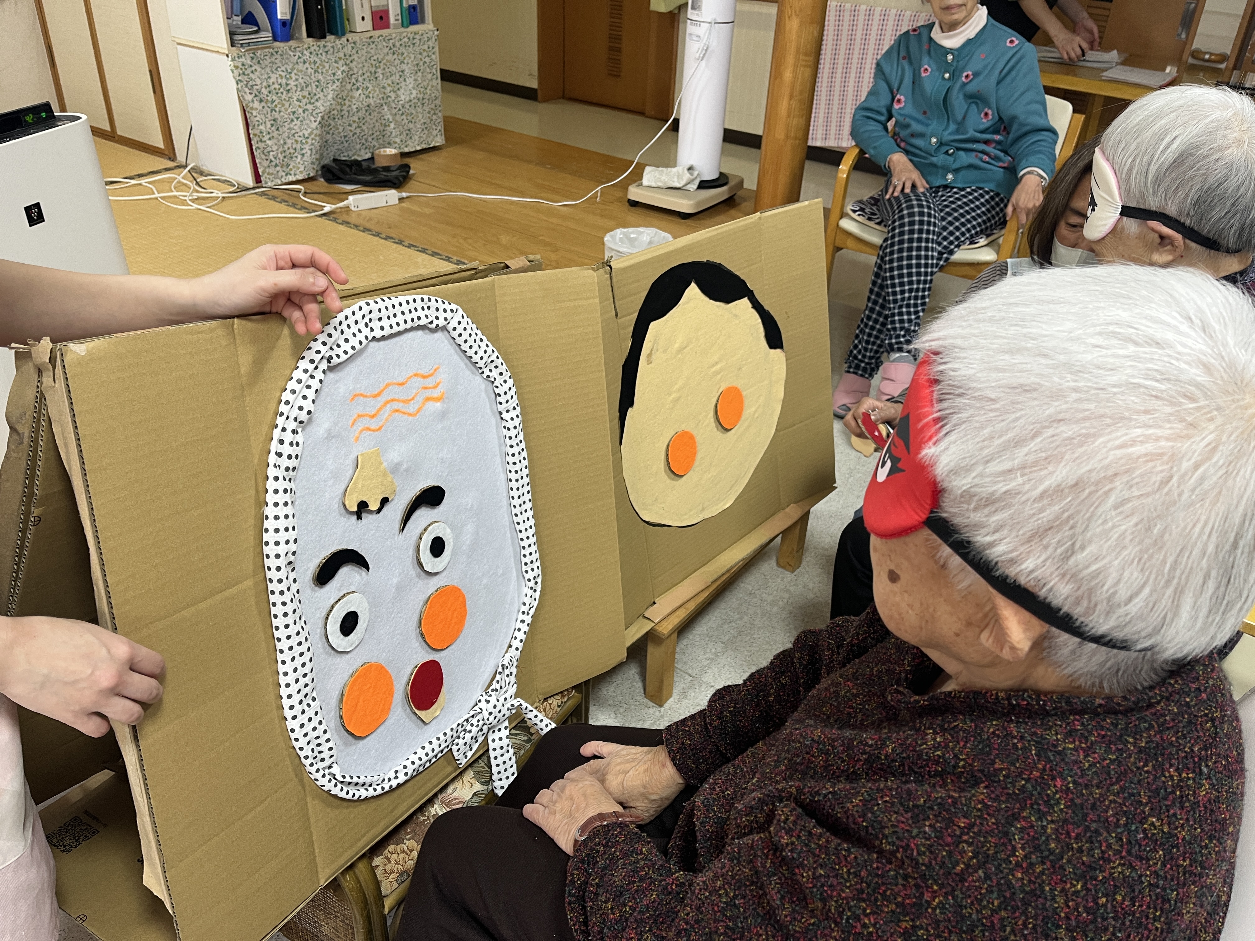 今日は、福笑いを行います!