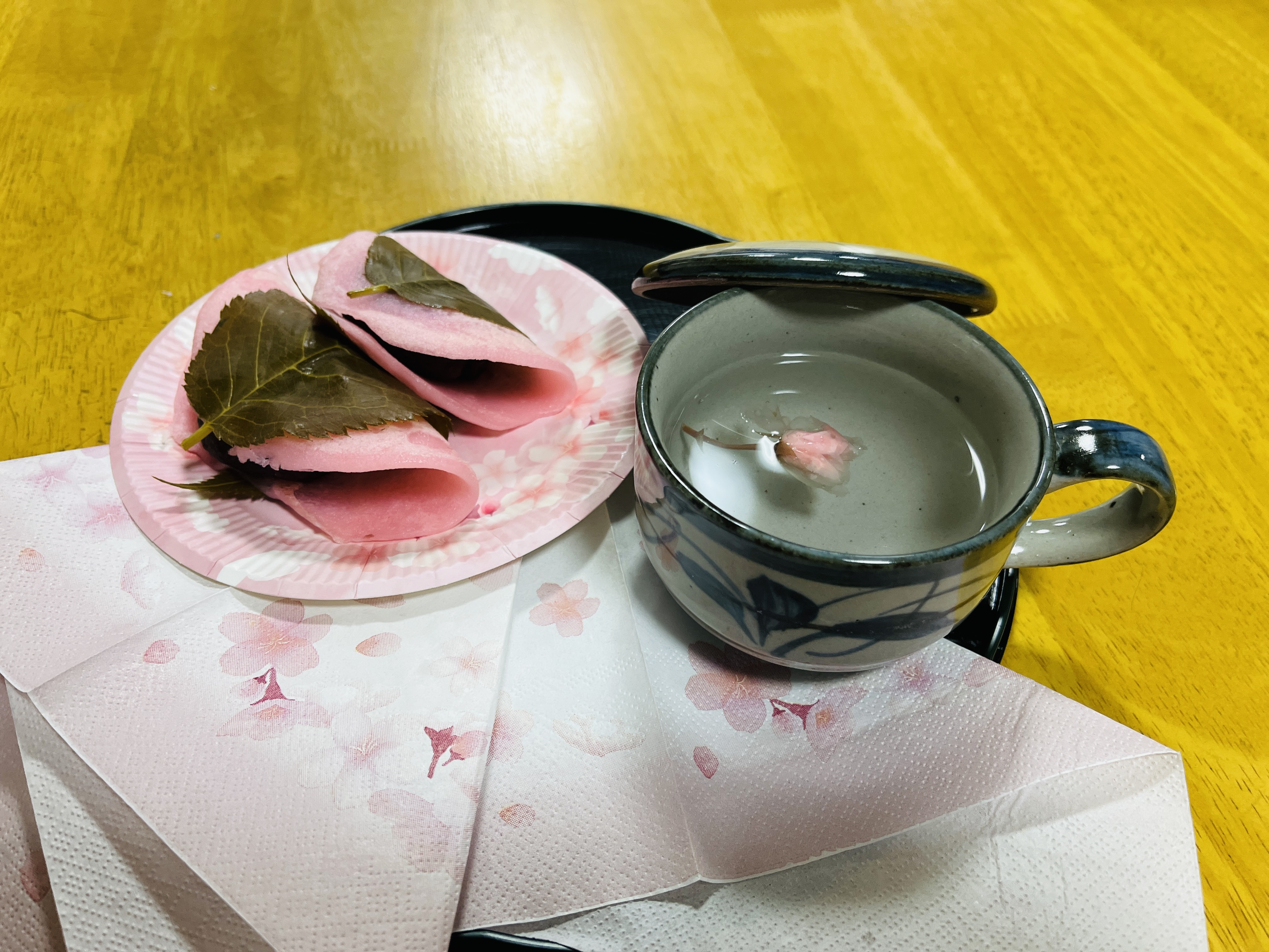 桜のお皿に、桜茶🌸を添えて